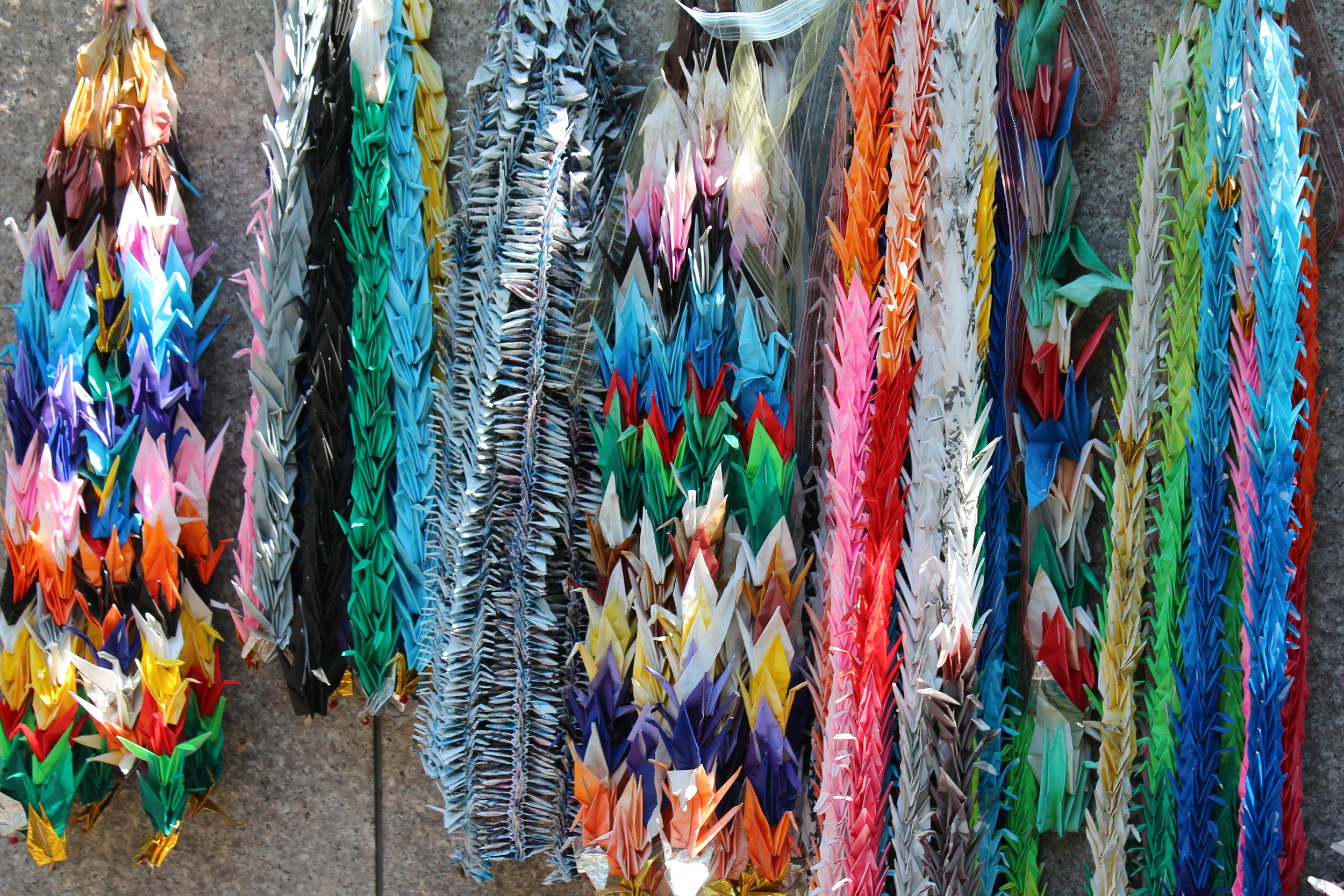 Paper crane wreaths placed on shrines.
